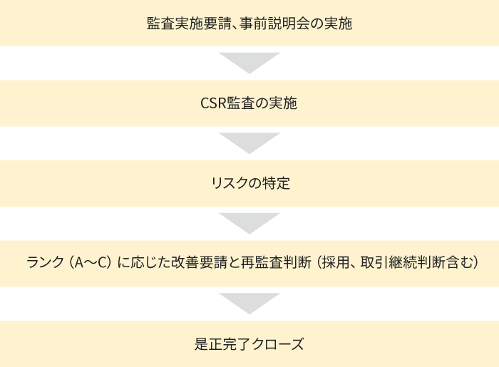 仕入先様の状況に応じて、具体的な施策案を提示、アドバイスを行うなど是正に向けて一緒に取り組みます。