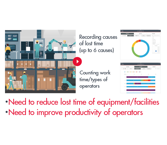 Addressing the need for continuous improvement in manufacturing productivity, JIGlet’s dice device and dedicated management screen can easily aggregate and graph data of a manufacturing site, allowing operators to quickly assess the productivity of the equipment and the workforce.