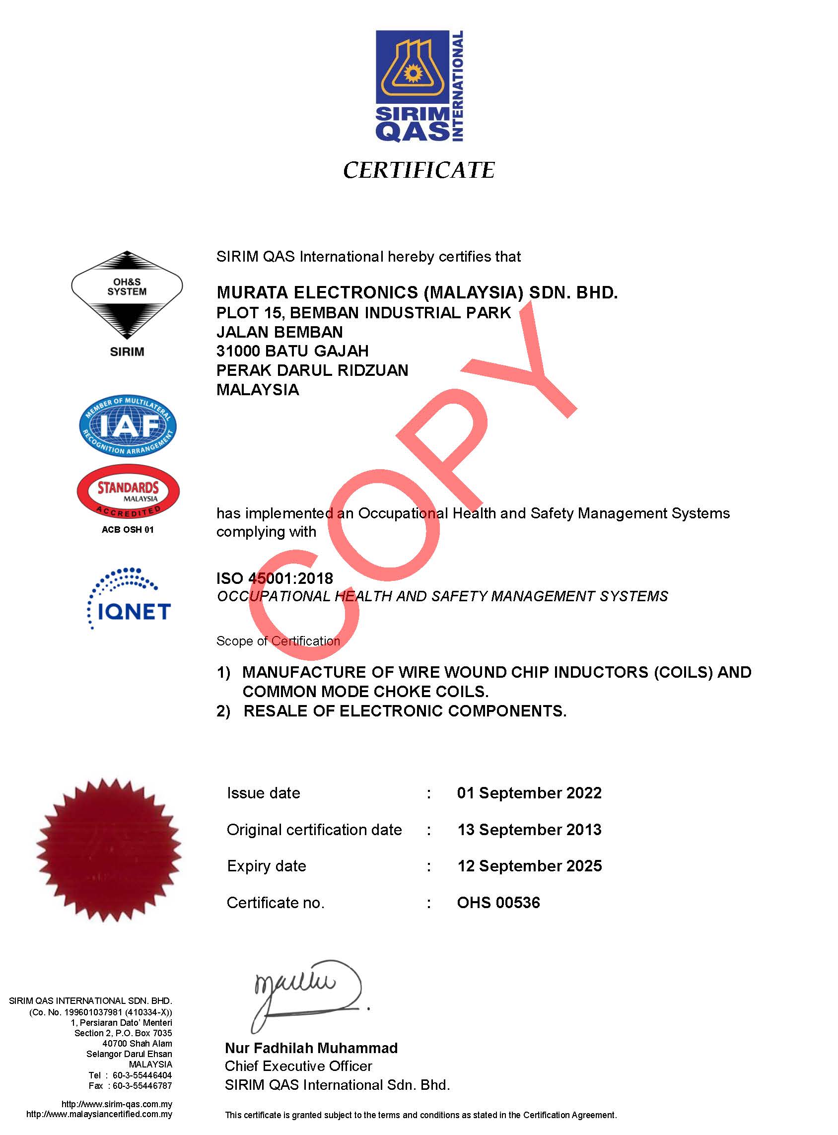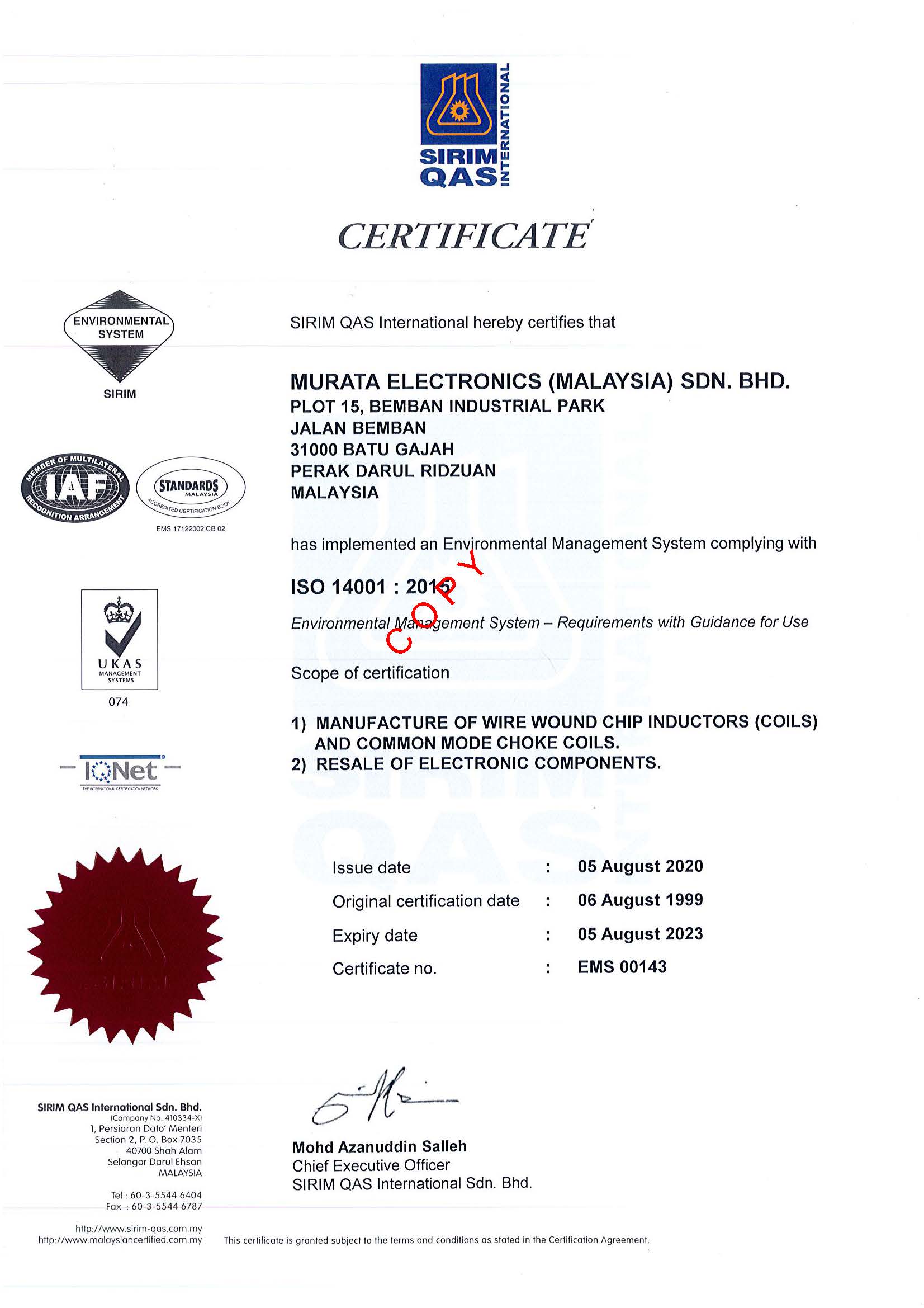 As part of the practice of management philosophy, the “Shaze” (Murata Group’s Philosophy), Murata Electronics (Malaysia) Sdn. Bhd. (hereinafter called “MME”) is committed to work continuously to reduce impact on the environment.
