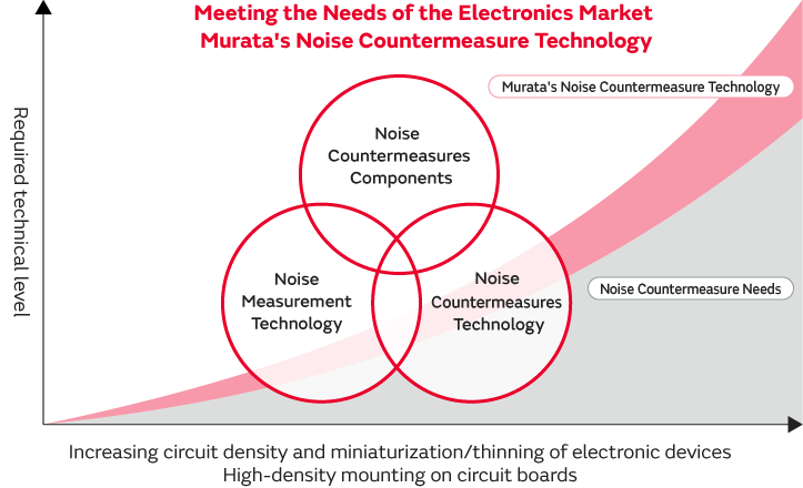 This technology addresses both emission noise countermeasures and immunity noise countermeasures.