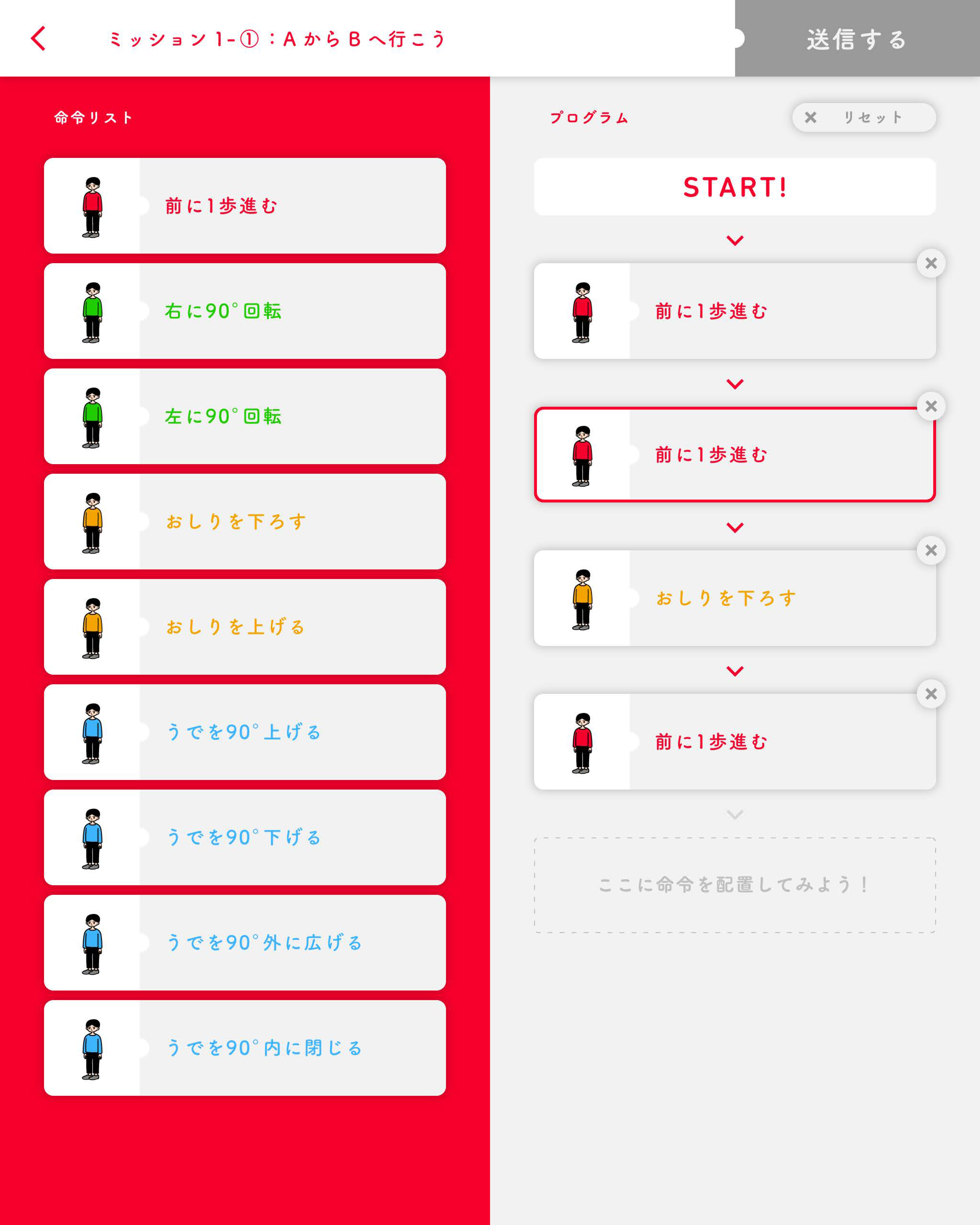 Teams of children transmit instructions combining various commands using a tablet device to make the “Sensei Robots” perform the desired actions. A programming mindset is fostered through a process of trial and error. |