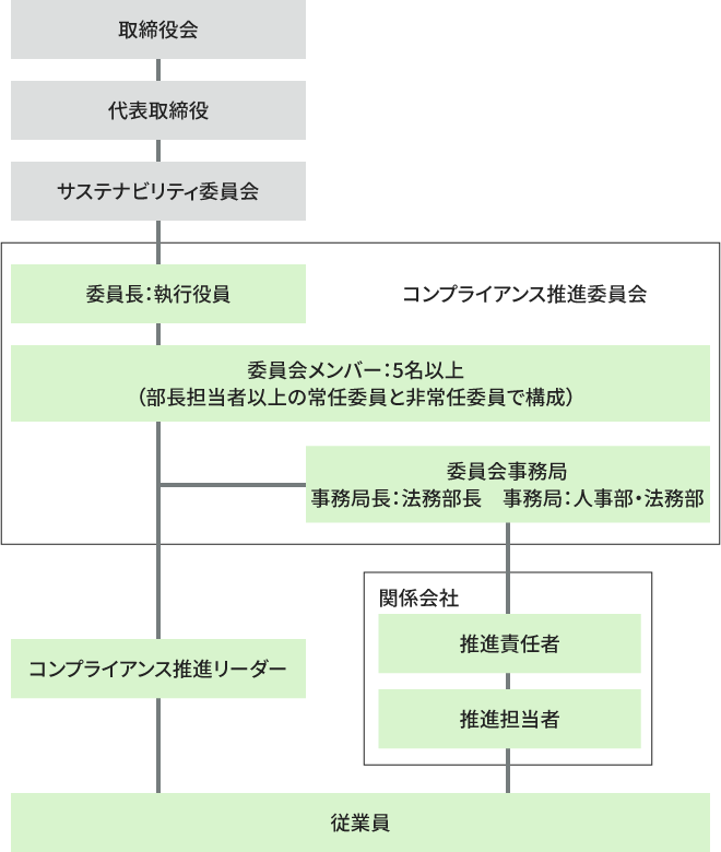 なお、これらのコンプライアンスの推進体制は、「コンプライアンス・プログラム規定」によって定められています。