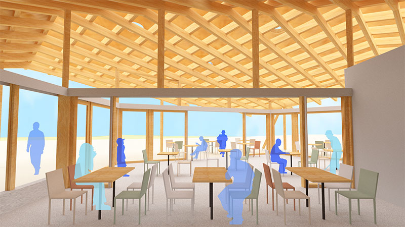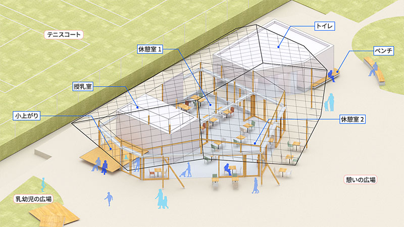 「誰もが気軽に集まり自由に憩うことのできる大屋根の下の木陰のような空間」