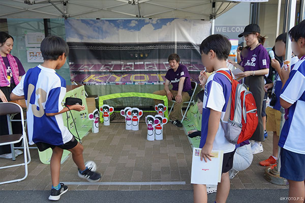 8月30日(土)京都サンガF.C.vsファジアーノ岡山戦において「muRataスペシャルデー」を実施しました。 当日はスタジアム外の北広場にてムラタの企業ブースを出展し、サッカーにちなんだ2種類のミニゲームをご用意しました。 参加者には、ムラタのノベルティやオリジナル缶バッジをプレゼントしました。 缶バッジは、サンガマスコットのパーサくんと村田製作所チアリーディング部のコラボによる、「muRataスペシャルデー」限定デザインです。 小さなお子さまから大人まで、たくさんの方にご参加いただき、大盛況でした!