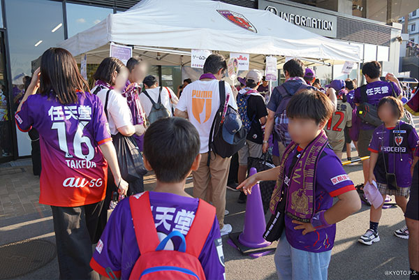 先着10,000名の来場者には、「GO! GO! SANGA バンダナフラッグ」をプレゼントしました。 試合中、スタンドでは多くのサポーターの方々がこのフラッグを振ってくださいました! このフラッグは、応援フラッグとして使用した後、バンダナとしても楽しめる仕様になっています。 実際に、過去のスペシャルデーでプレゼントしたフラッグを、お弁当包みとして活用しているという方のお話も伺いました。