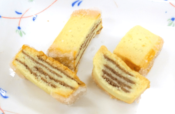 今回の研修は、「製造工程への理解を深める」・「製造を身近に感じる」・「コミュニケーションのキッカケづくり」を目的とし、さまざまな部門から集まった当社従業員20名が参加しました。生地をうす~く伸ばして積み重ねるなど、普通のクッキー作りにはない工程に苦戦しながらも、参加者それぞれが持つ製造ノウハウを共有し、協力し合いながらなんとか完成しました!完成したコンデンサクッキーは、内部電極(チョコ部分)が綺麗に積層されていて、見た目も味も百点満点でした◎