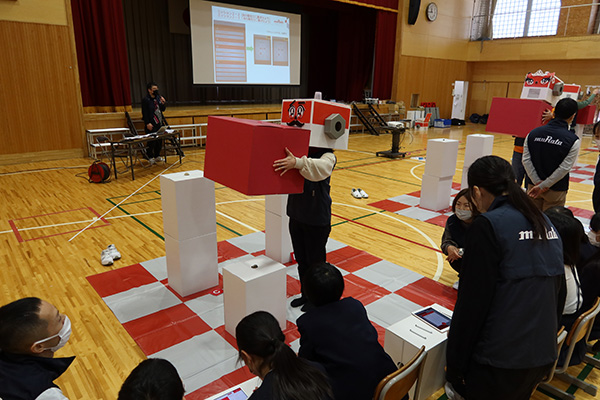 2月20日、21日に白山市立明光小学校で体験型プログラミング教育出前授業「動け!せんせいロボット」を実施しました。この出前授業は、子どもたちのプログラミング的思考(論理的に考えていく力)の習得に貢献することを目的としています。