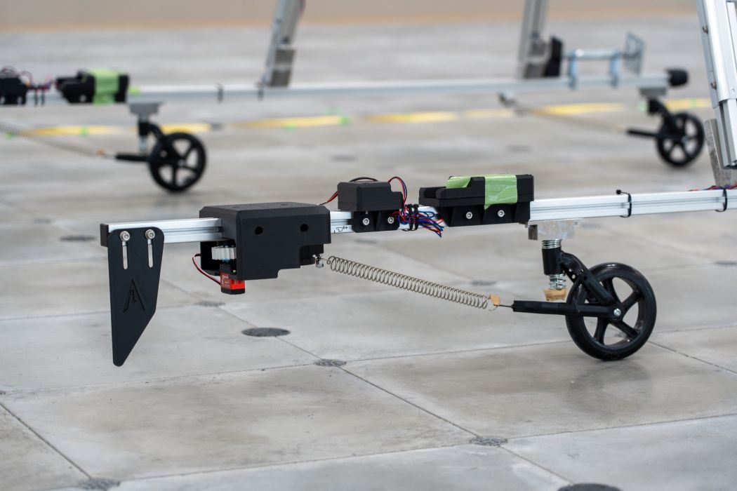 またタイヤ自体も、開閉動作で接地面積の変わらない形状や滑らない材質のものを選定、さらに走行時は滑り止めスプレーを塗布し、摩擦を最大限まで高めている。