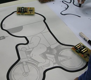 *ライントレースカーとは、地面に描かれた黒い線を光センサで読み取って進む車です。
