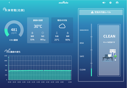 昨年度に続き、安心・安全な大会運営に向け、大会会場である西山公園体育館にCO2濃度をリアルタイムに可視化し分析を行う空間可視化ソリューション「AIRSual」を設置します。