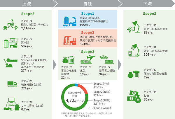 国際社会における気候変動対応の加速が急務となるなか、今後温室効果ガス排出削減の取り組みをさらに加速させていくうえで、事業者の活動に関連する他社の排出であるScope3への対策は不可欠です。当社の温室効果ガス排出量のうちScope3は78%を、なかでも自社の資本財の建設・製造に伴う排出であるScope3 カテゴリ2は12.6%を占めており、自社拠点の建設における施工先さまと協働での温室効果ガス排出量削減の取り組みが重要となっています。