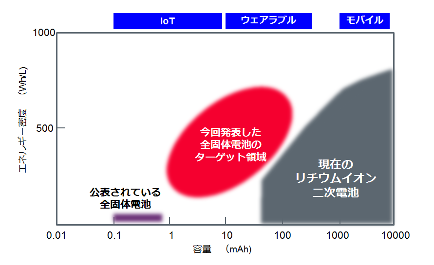 一般的な二次電池領域と本製品のターゲット領域