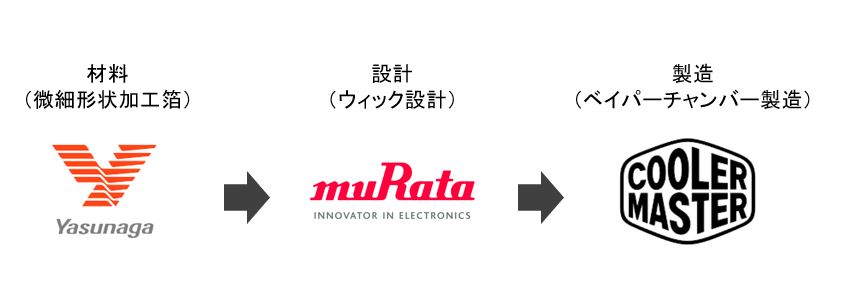 今回、安永が独自開発した微細形状加工箔に村田製作所の設計ノウハウを組み合わせることで新しいウィックを開発しました。ウィックを搭載したベイパーチャンバーはCooler Master社により製造・販売されます。
