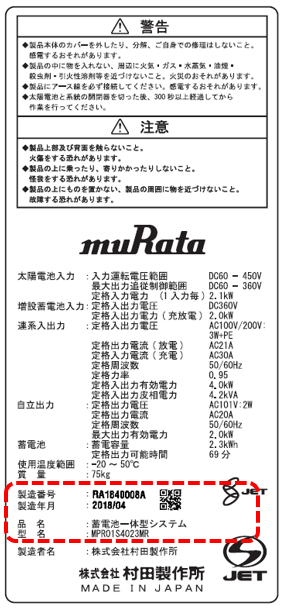 その後の調査の結果、一部の製造ロットにおいて、システム内のパワーコンディショナ部の部品で不具合が発生する可能性があることが判明しました。