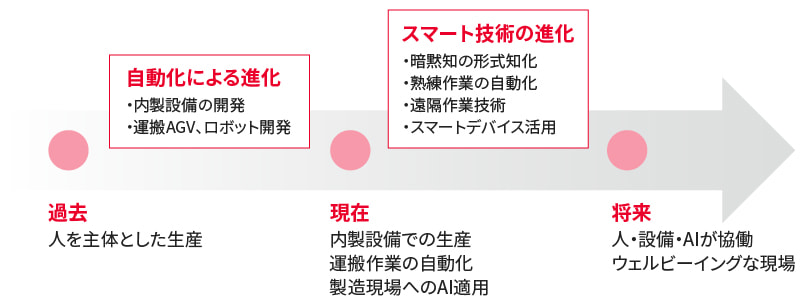 ムラタのスマート技術の強みは、製造現場に長年蓄積された社内データを活用し、先端技術を迅速かつ柔軟に開発・適用できることです。