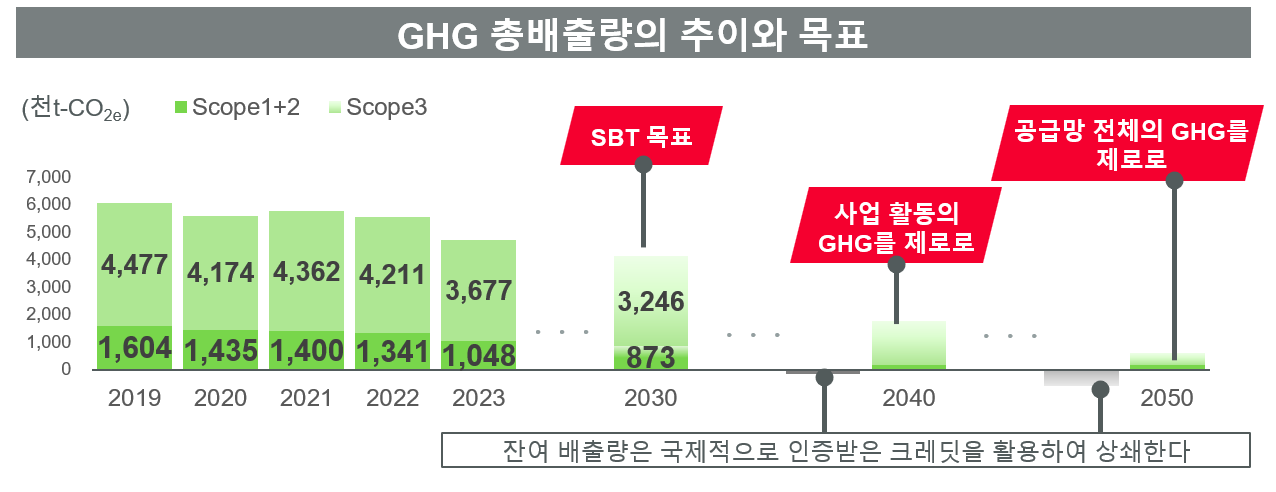 SBT1.5°C를 목표로 2030년도까지 기준연도 2019년도 대비 46% 삭감