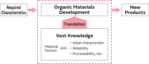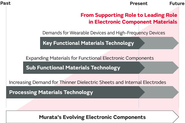 Moving forward, alongside the evolution of Murata's electronic components, organic materials technology will continue to advance in the fields of processing materials technology, sub functional materials technology, and key functional materials technology.