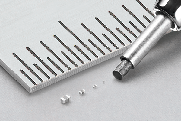 山口:本公司在2024年9月开发出的村田初创(*1)微小MLCC正是“Small”的体现。其尺寸为0.16mm×0.08mm,不足米粒的万分之一,单边长度仅如发丝粗细。达到这种尺寸的元件,其重量之轻,甚至会被鼻息吹走,导致基板贴装本身变得非常困难。为此,针对已实现量产的MLCC,本公司与贴装机制造商联合开发了专用的基板贴装工艺。坦白说,如此之小的元件竟能被准确定位并贴装,连我自己都感到惊叹。