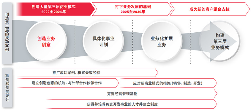 根据中期方针2024,2030年之后第三层事业将成为资产组合支柱。为了实现这一目标,我们首先将不断积累快速成功和微小成功,并判明能够发挥村田优势的领域。然后,为了开辟第三层的新业务,我们将具体化人才和组织形态等战略,以解决现有的公司内部结构无法解决的课题。