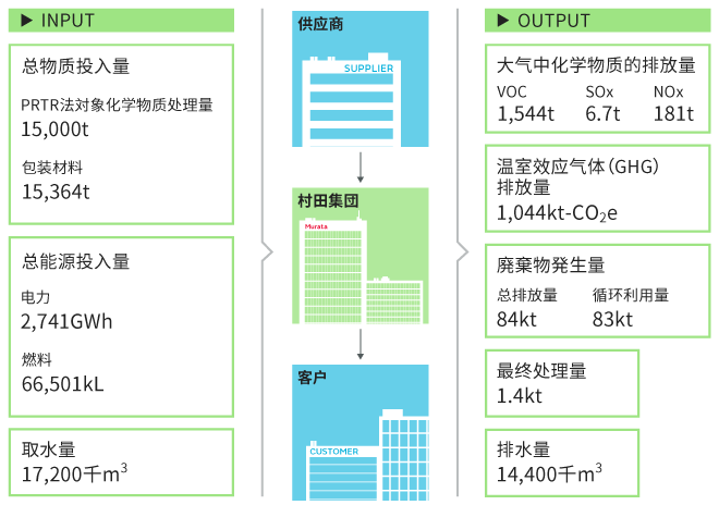 村田通过掌握和分析经营活动产生的环保负担物质的定量,努力减少生产活动给环保带来的负担。