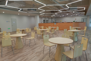 同时,提供配备了点歌机、音响、话筒等设备的娱乐室,员工可以将娱乐室作为排练节目、唱歌、跳舞、集体生日party等活动的场所。厚生楼一层还设有员工运动区域,员工可以在业余时间开展健身运动。立体停车场楼顶新增篮球活动中心,为运动爱好者提供挥汗如雨的活动场地。