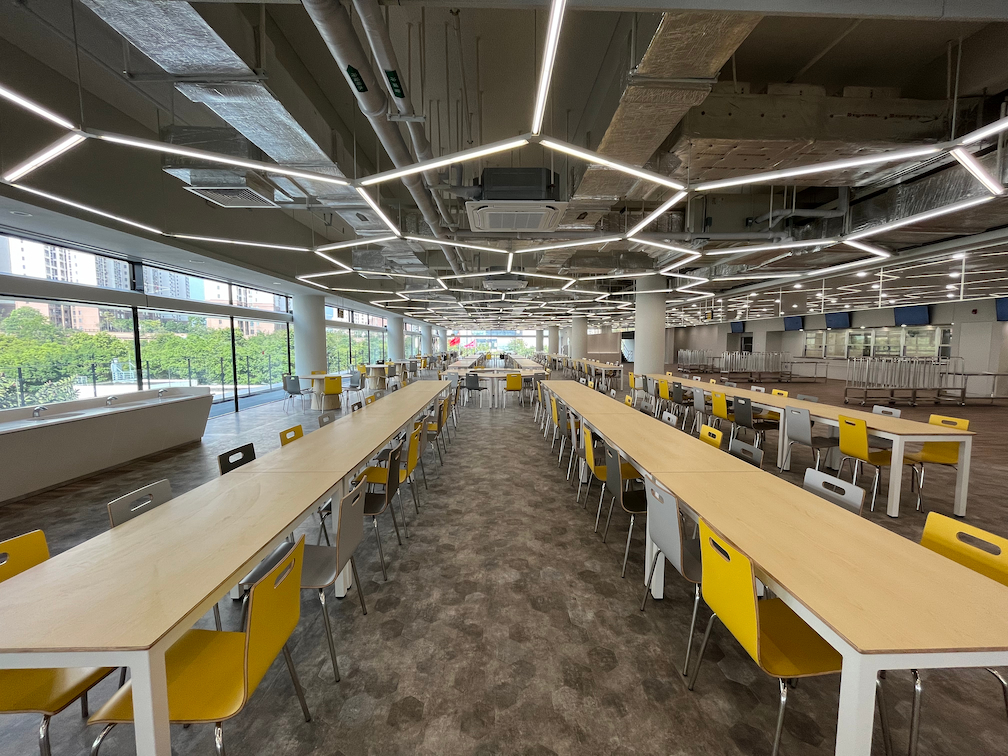 厚生楼2、3层为员工食堂,提供盖浇饭、面条、水饺、汤粉、川湘及粤港风味特色菜等菜品供员工自由选择。