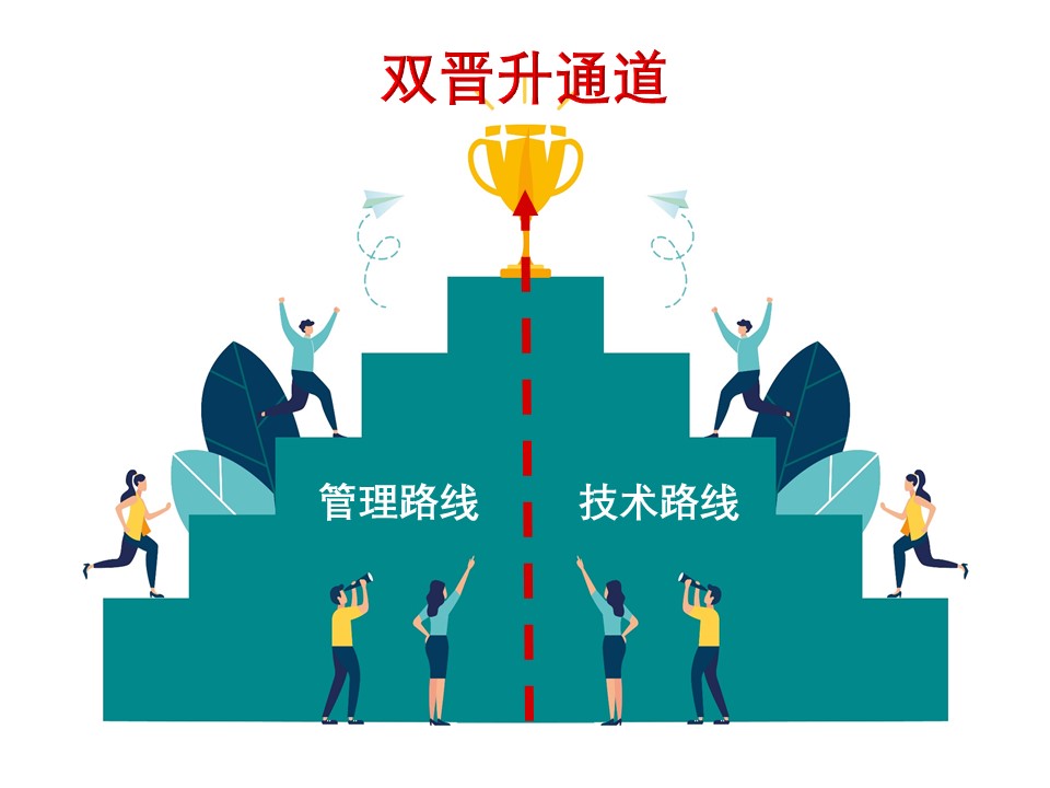 在职级晋升和个人发展方面,公司采用“管理路线”与“技术路线”相结合的双晋升通道制度,让员工可以根据自身的特点和优势选择自己的发展方向。同时,对于优秀员工,公司提供充足的上升空间,并通过积极的评价与提拔,让人才能够最大限度地发挥才干。