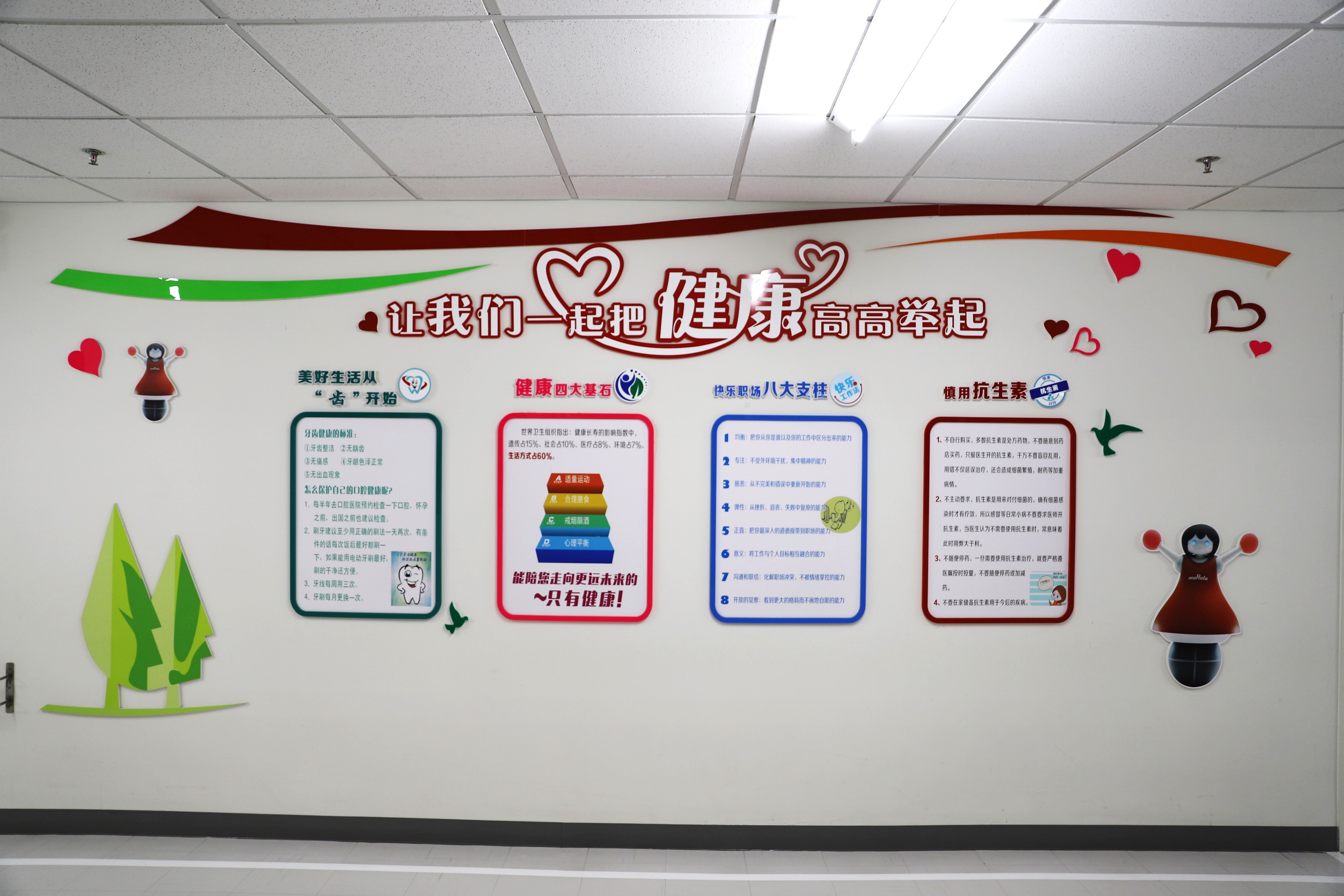 公司注重员工身体健康,设置健康管理室;每年安排定期体检;同时考虑到女员工的需要,设置了MDW女职工康乃馨服务站,服务站有心理疏导室、亲子驿站、妈咪服务站等多种作用,真正做到保障员工权益,关注员工身心健康。