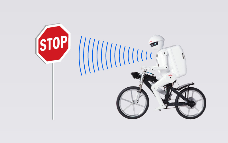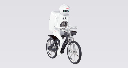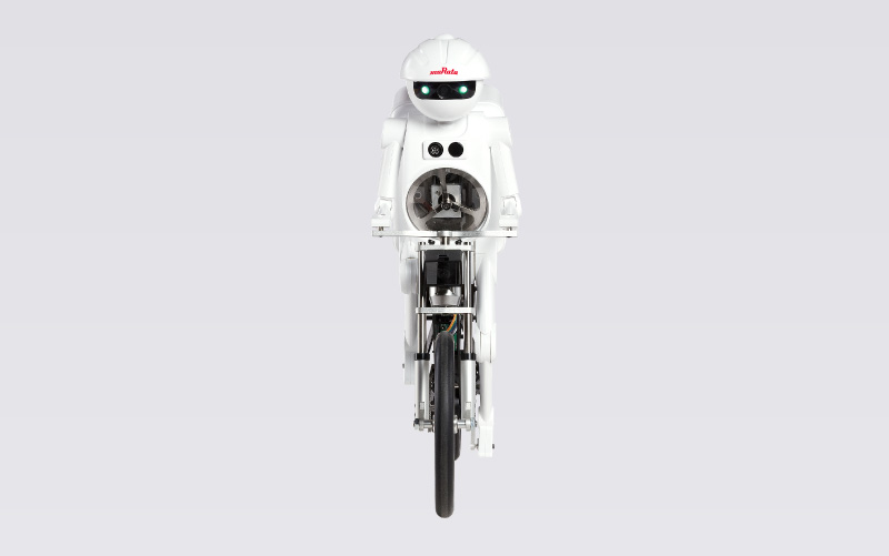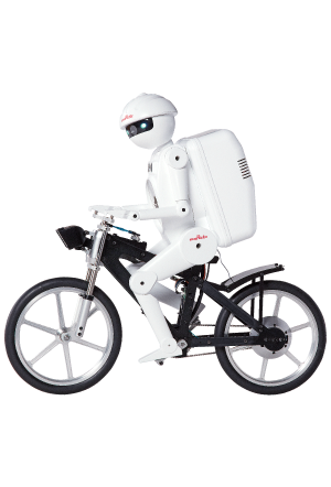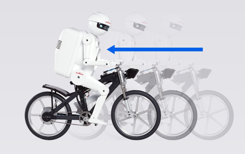 骑在自行车上行驶。即使完全停止也能保持平衡而不跌倒!可展示在上坡道、平衡木上行驶等各种绝活。