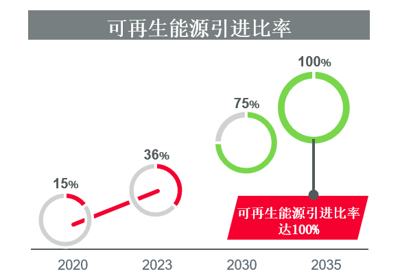 1.将RE100的实现时间从2050年度提前至2035年度