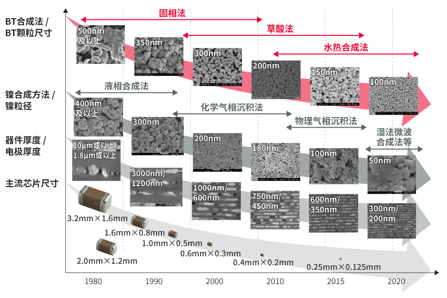 介电材料技术:利用高介电常数的钛酸钡(BaTiO3)等材料,形成多层陶瓷电容器的介电层。该层是决定电容器电容和耐压特性的关键核心材料。